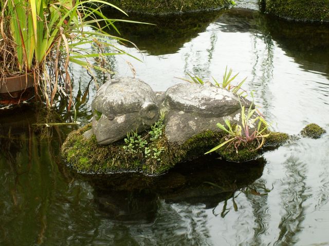 吉井小学校の前を流れる川の小路に浮かぶ河童さん。